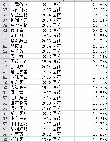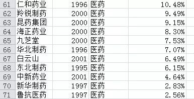 虽然医药板块回报率较高的公司占据很多,但是细分到医药板块还是需要注意,我这个医药方面的小白就自己的看法说说,首先老字号中药公司回报率普遍不错,这个板块需要我们重点关注,东阿阿胶连续多年提价,同仁堂旗下也有很多老字号产品销售不错,这不前段时间治疗痔疮的老字号公司马应龙又华丽丽的提价了,有的时候不服不行;优秀的西医制药公司收益率普遍不错,恒瑞医药,复星医药,丽珠集团,血制品公司表现也不错,两家公司回报率很高,原料药相对表现较差,因此对于西医制药应该关注研发力度投资较高的公司或者综合性平台公司,尽量避免技术含量较低的公司。