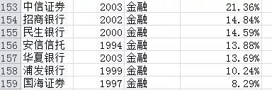 如果时钟拨回到20世纪初,问大家最看好的行业是什么?一定包括软件和通信行业,那么我们来看看这两个行业的表现,我们可以看出,除了东软集团回报率较为出色,其他公司如果光看回报率非常一般。通信业除了华为,其他公司表现也较为一般,当初的美国也是极为看好通信业,结果回报率也是惨不忍睹,通过回报率观察,我们可以看出热门行业在二级市场的回报率很少有拔尖表现,大部分表现平庸,始终记住回报率和行业是否热门无关。