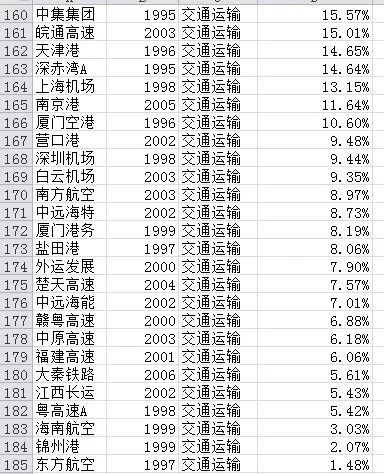 航空公司表现整体较差,高速公路和机场表现也很一般,港口表现稍好,这个版块没有什么特别出色的公司,虽然偶尔会出现一些阶段性的公司,但是对于长期投资者并不需要重点关注。