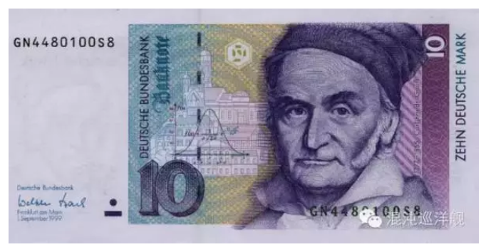 图3: 严肃的高斯与美丽的正态分布曲线出现在10元马克上