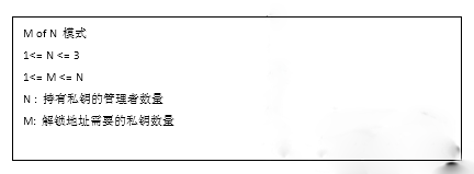 2 of 3: 三个管理者中,必须有两方共同签署才能处理该地址的资产。