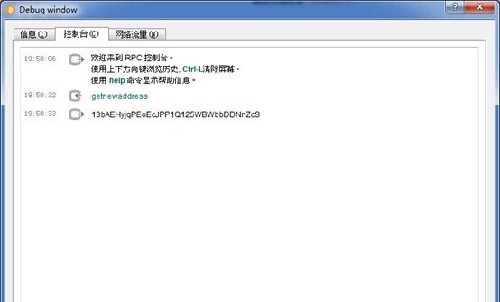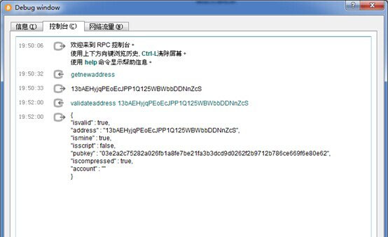 首先,打开“比特币核心”钱包。点击“帮助”->”调试窗口”,在弹出的“Debug window”窗口点击“控制台”。进入图1控制台的界面: