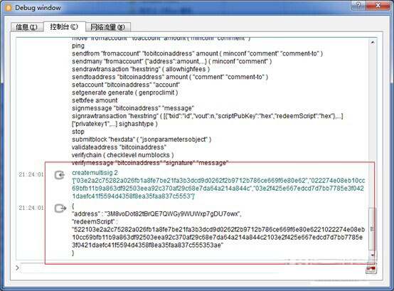 花费多重签名地址的程序运行如下: