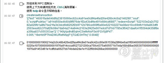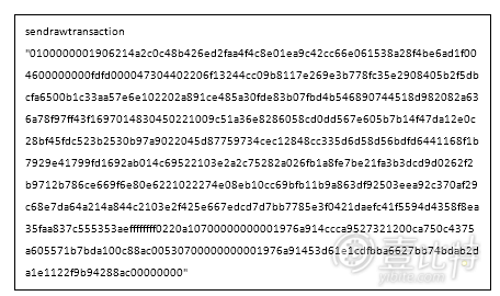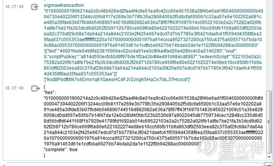 将上一步的输出hex部分,用sendrawtransaction命令发送到网络上: