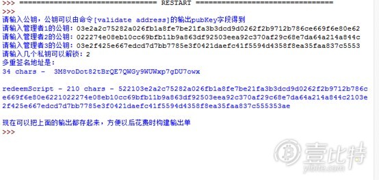 具体的使用方法,就不再说明了,可以用python的IDLE来运行调试。构建多重签名地址的运行截图如下: