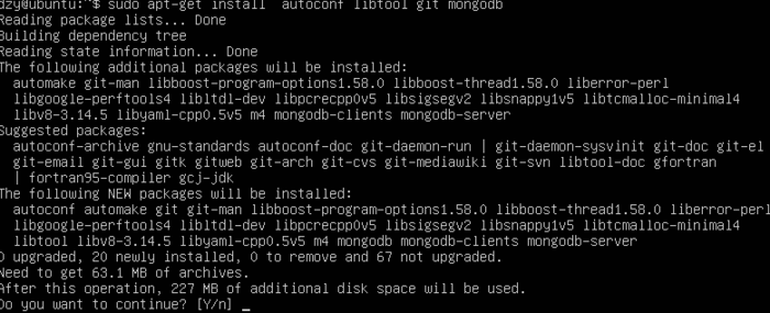 sudo apt-get install autoconf libtool git mongodb