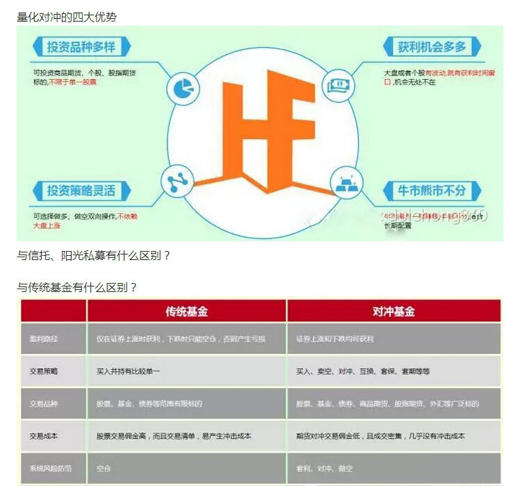 量化对冲产品也是一种阳光私募。所谓的阳光私募就是纯做主动管理股票多头的阳光私募基金,国内主流量化对冲产品的风险和收益介于主动管理股票多头阳光私募和固定收益信托之间,但是夏普率(投资性价比)普遍高于其他两种类型产品