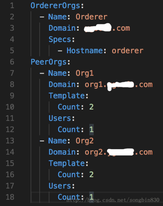 -通过配置文件 crypto-config.yaml配置fabric 网络用户拓扑关系。Crypto-config.yaml 内容如下: