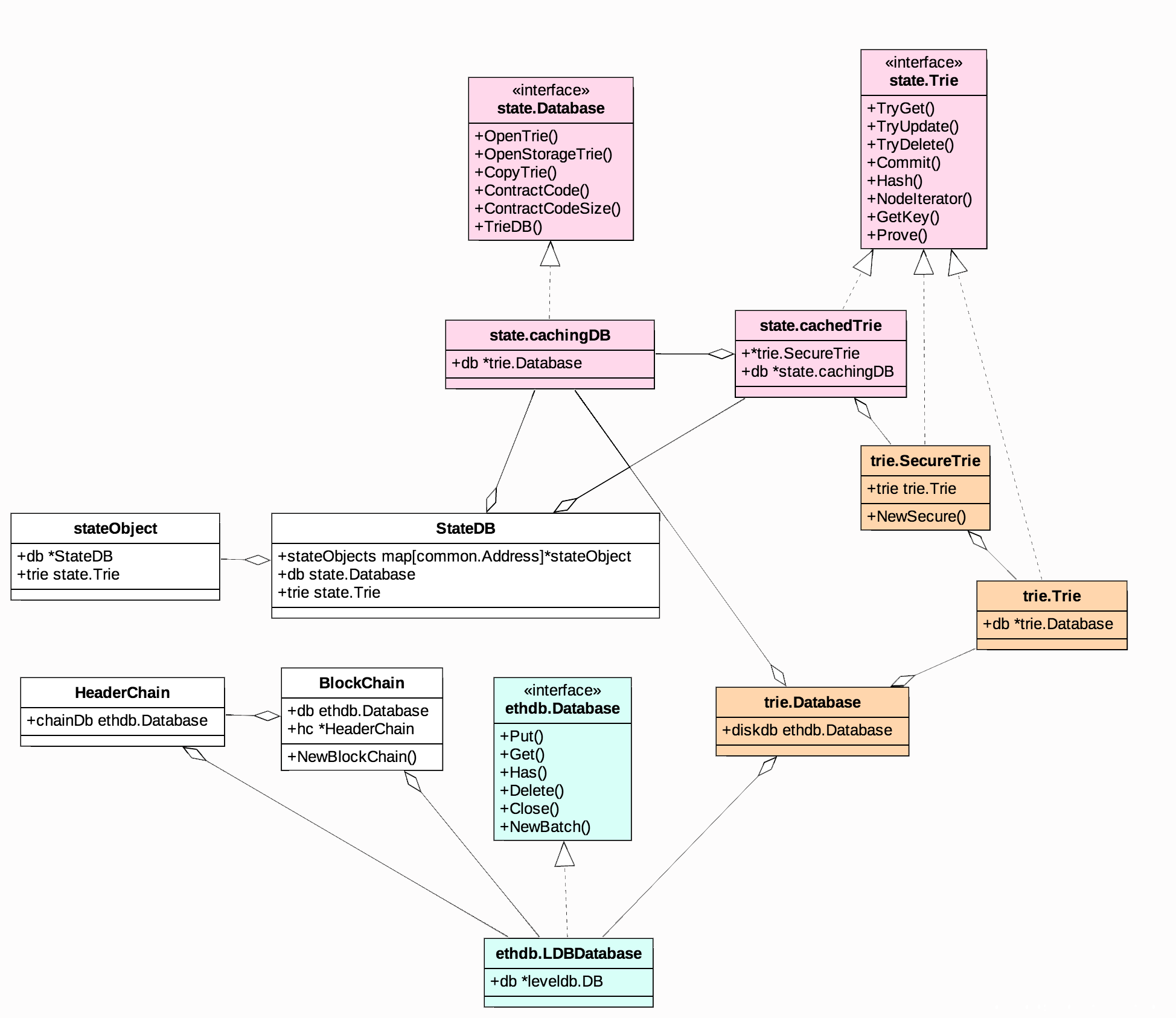 我们可以看一下StateDB具体实现的UML图:
