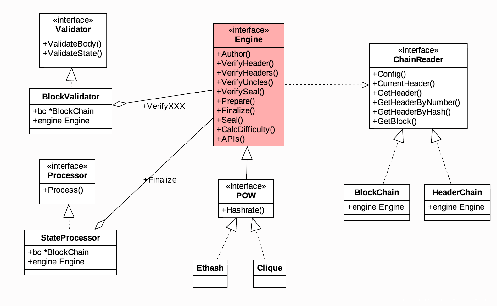这一篇分析以太坊的共识引擎,先看一下各组件之间的关系: