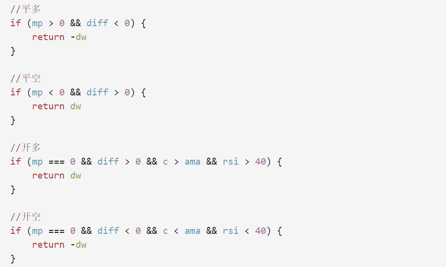 1、多头开仓。如果多头无持仓,并且KAMA与MA的指标值的差值序列上穿零值序列,并且K线收盘价大于KAMA最新指标值,并且RSI最新指标值大于35。