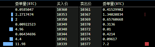 和所有的高频策略一样,本策略也是基于orderbook,下图就是一个典型的比特币交易所的订单分布: