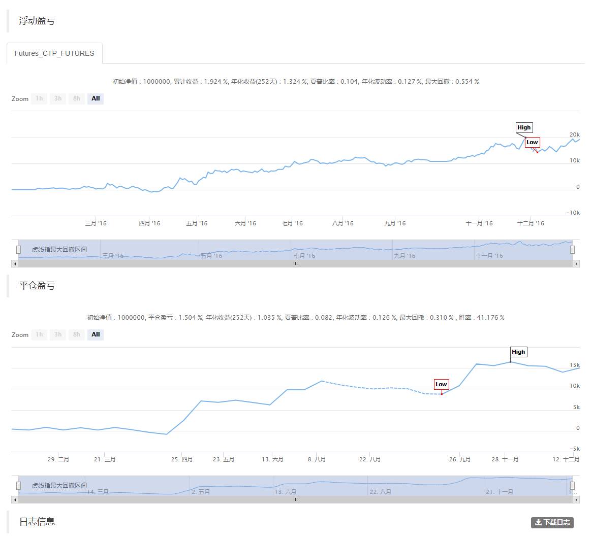 本策略是通过唐奇安通道上下轨进行止损出场的,也可以采用最大浮动亏损百分比进行止损。