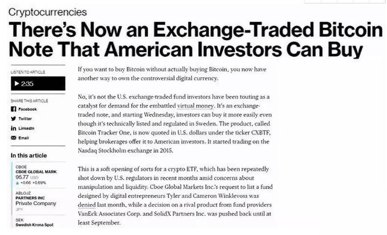 也有观点认为,想让ETN产品具有更多的竞争力,投资者们就需要说服他们的经纪账户供应商在其平台上提供比特币ETN服务。据不少投资者反应,他们的经纪账户供应商表示目前还不支持CXBTF(Bitcoin Tracker One的交易代码)的交易,又或者是需要执行更加复杂繁琐的步骤来进行交易。
