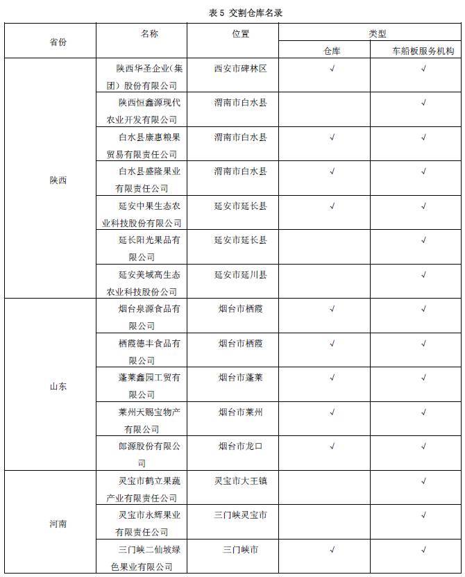 交割地点:苹果期货要求在交割计价点交割。