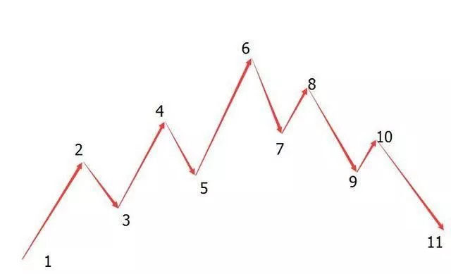 【7-8】:上升四浪(未突破前一浪,高位卖出,即点位8)【8-9】:破位下跌