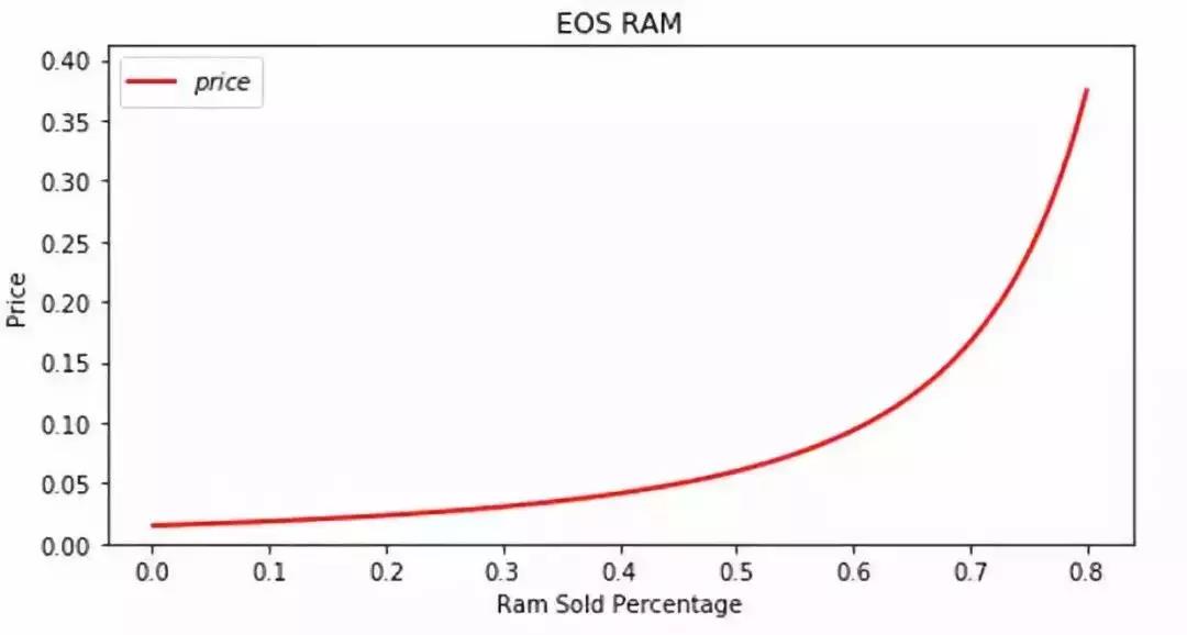 在EOS系统内,RAM作为有限的资源,如何分配就成了关键。其实,在EOS DAWN 3.0版本,EOS RAM的买卖采用的“原价买原价卖”的办法,也就是说RAM的价格可能发现变化,但是对于交易者来说,卖出的价格只能与其买入时的价格相同,无法从中赚到差价。这样就会产生一个问题:一旦EOS RAM被买完了,先买者即使不再需要占用RAM资源,也没有动力将其卖出释放回市场;而且如果RAM的市场价格上涨的话,原来低价买入者就更没有动力将手里闲置的RAM释放回市场了。因为以后买回同样多的RAM,将需要更多的EOS做抵押;这种机制非常不利于RAM的流通,所以在EOS DAWN 4.0,RAM的分配方法应用了Bancor算法,这个算法比较复杂,但是简单来说:未出售RAM数量越少,RAM的交易价格将越高。