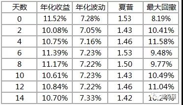 在定义一个月时,既可以用自然月(每年12个自然月),也可用固定交易天数作为一个月(如21天)。固定21个交易日rebalance的结果见图6。结果显示,无论用哪种方式,区别不大。