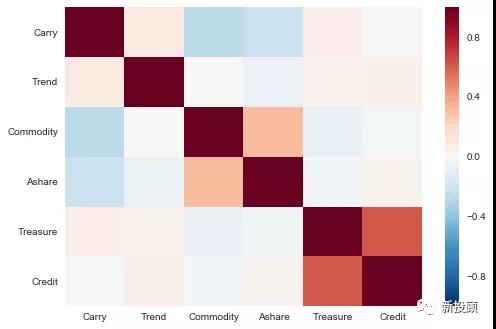 其中Trend用的是中信商品动量指数,Commodity用的南华商品指数,Ashare用的中证全A指数,Treasure和Credit分别用的是中债国债和信用债总财富指数