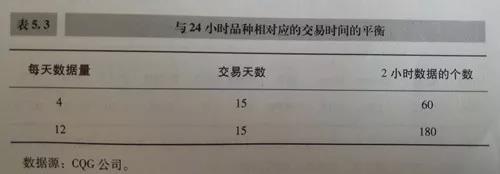 我们通过观察图5.3可以发现,美国长期公债在15天内有60个2小时数据,而欧元兑美元有180个。从这点我们可以得出相等的交易天数并不意味着相等的数据个数。
