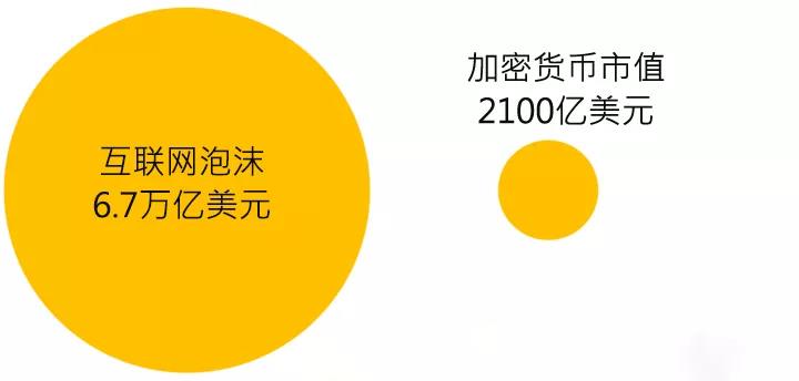 虽然目前很多币都处于高估值的状态,但争夺市场份额之战才刚刚开始,市场中充满各式各样的炒作,但相比于互联网的“泡沫规模”依然很小很小,我们至少需要翻30倍,才能达到2000年互联网泡沫的体量。