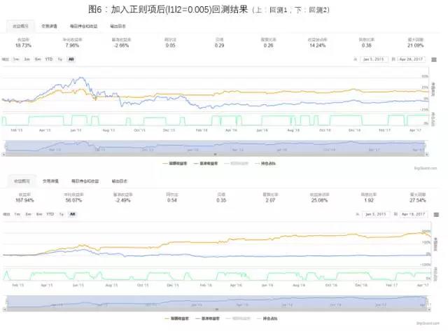 回测结果如图6,加入正则项之后回测1和回测2的最大回撤均有下降,说明加入正则项后确实减轻了模型的过拟合。比较加入正则项前后回测1的持仓情况,可以看到加入正则化后空仓期更长,做单次数减少(19/17),可以理解为:加入正则项之后,模型会变得更加保守。