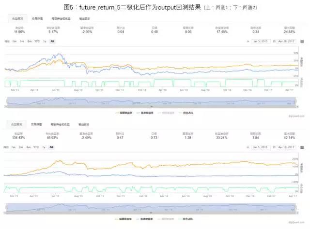 两种处理方法的回测情况如图4,图5。由于模型每次初始化权重不一样,每次预测和回测结果会有一些差别,但经过多次回测统计,直接将future_return_5作为output进行模型训练是一个更好的选择。在本推文接下来的讨论中,将会直接将future_return_5作为output进行模型训练。