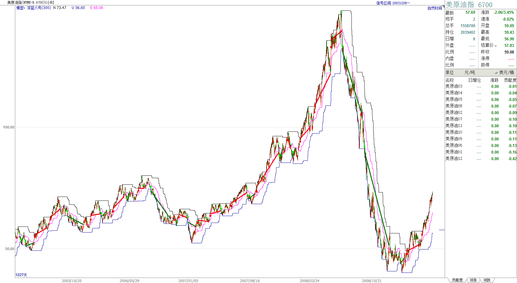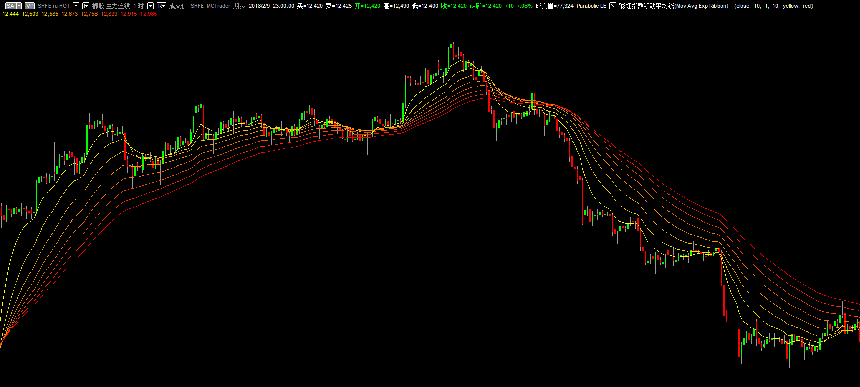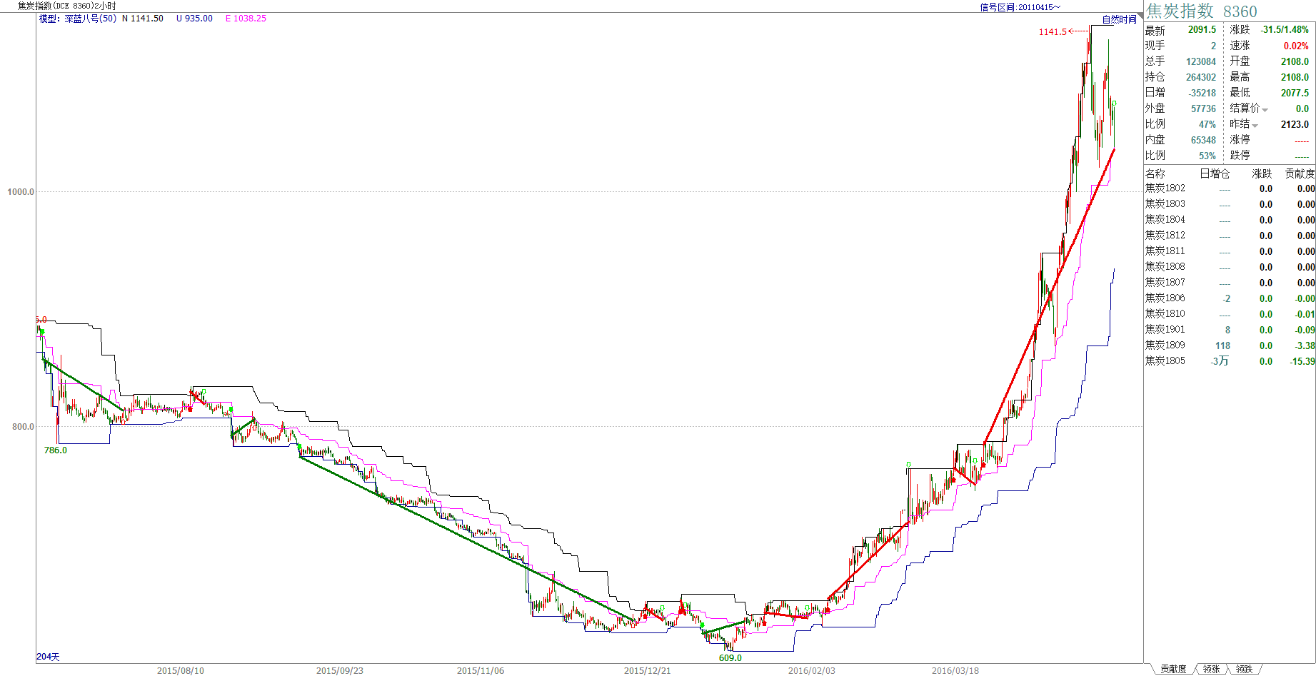 用来判定最高点和最低点的 K 线条数取决于我们愿意给交易多少变化空间。我们用来越多的 K 线条数来确定上下轨,我们给予程序化交易的变化空间越大,相应的,在触发止损前盈利回撤的幅度也会越大。使用越近的高点或低点,止损被触发的速度也越快。所以看你要怎么去设定都可以。基本上这里介绍的通道宽度是由市场的波动率和系数来决定的,想让通道窄一点就设定小一点,想让通道宽一点就设定大一点。