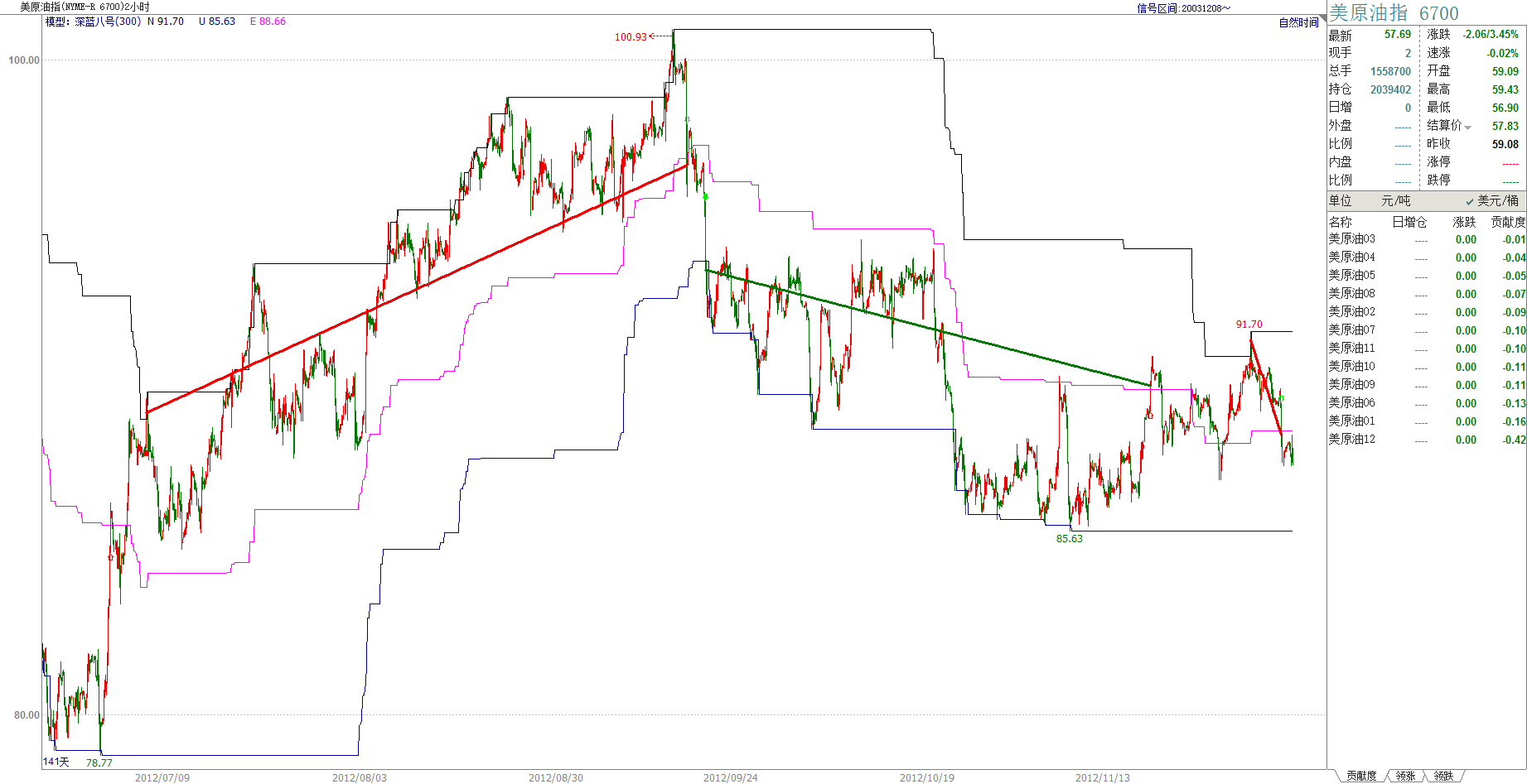 大家一定觉得奇怪为什么通道下限的计算中要乘上系数来调整呢?那是因为经由观察过后发现价格比较常接触到上限,比较不容易接触到下限,所以这边乘上一个系数来做调整。