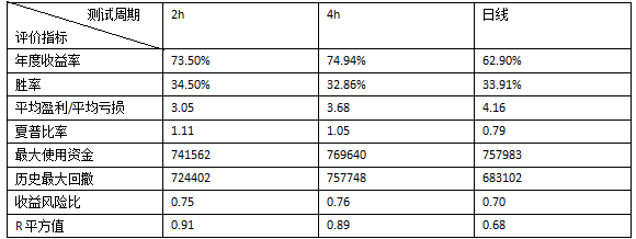 3、从具体绩效来看,小时周期的表现要好于大周期的,这主要是由于大周期(日线)级别相对交易机会过少所致,所有周期的绝对收益表现并出十分出众。
