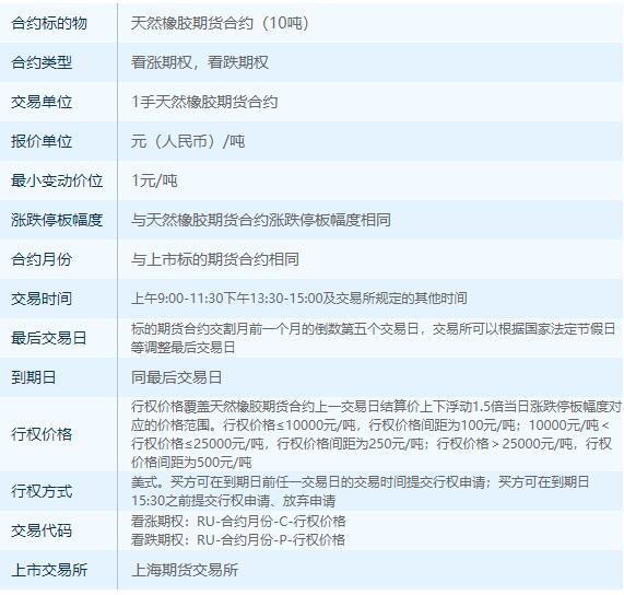 天然橡胶期权合约详情