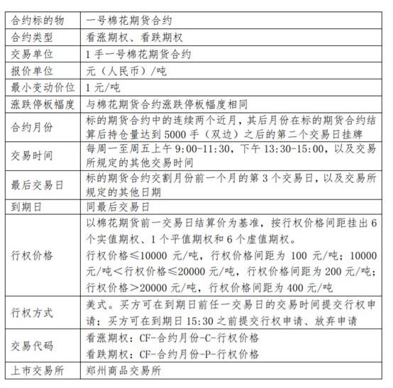 棉花期权合约详情