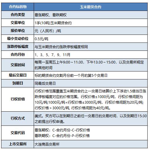 玉米期权合约详情