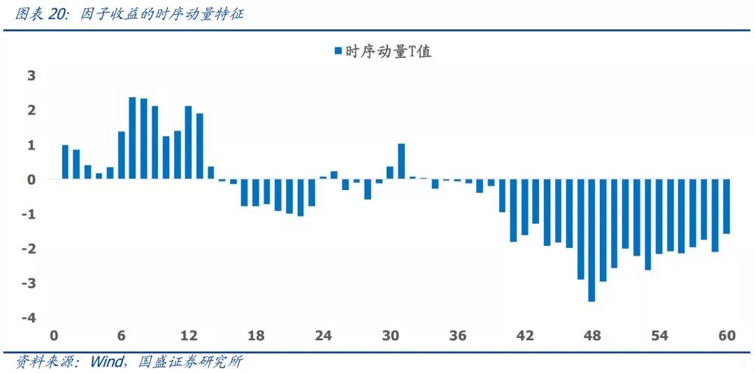 我们从横截面和时间序列两个方面考察因子收益的动量特征。首先,通过时序动量分析,我们希望解答的问题是:因子过去的表现能否用于预测因子未来的收益?从结果来看,因子表现具有短期动量、长期反转的时序特征,其中6-12个月的动量效应最强,48个月的反转效应最强。