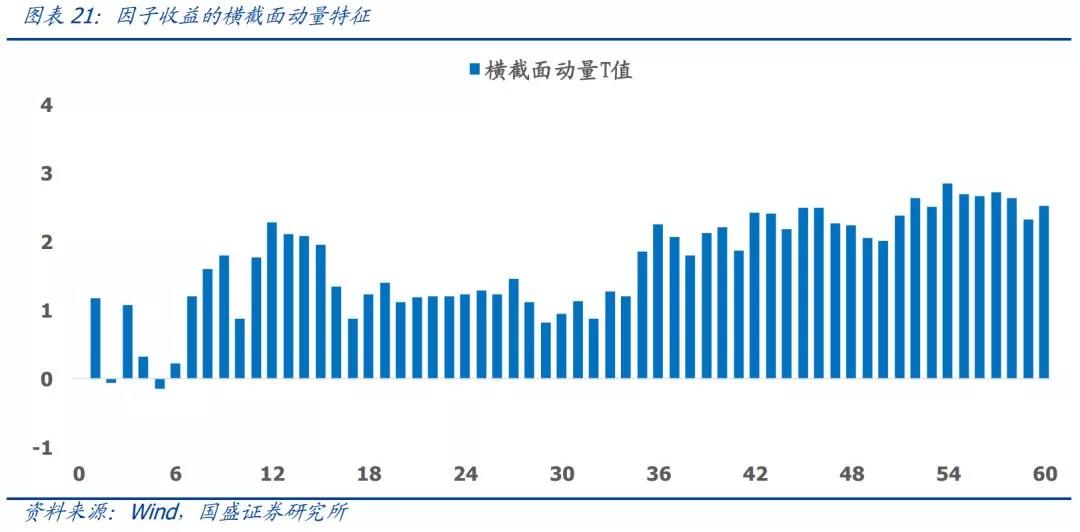 通过横截面动量分析,我们希望解答的问题是:一个因子最近的表现比另外一个因子好,这种优势在未来能否持续?从结果来看,因子具有普遍的横截面动量效应。