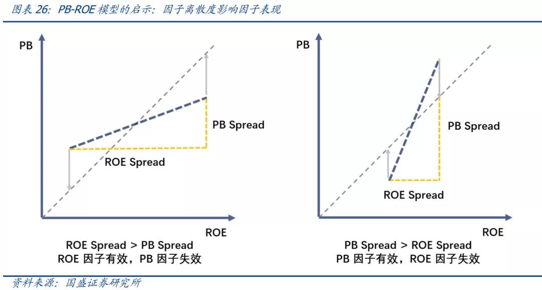 以PB-ROE模型为例,我们可以发现,当ROE的因子离散度大于PB的因子离散度时,ROE因子将主导市场风格而PB因子将出现阶段性的失效。如果一个因子的离散度较高,那么这个因子将更有可能成为资产的定价核心,从而主导市场风格。因子离散度有效的核心逻辑在于资产定价在极度无效后会出现均值回复。