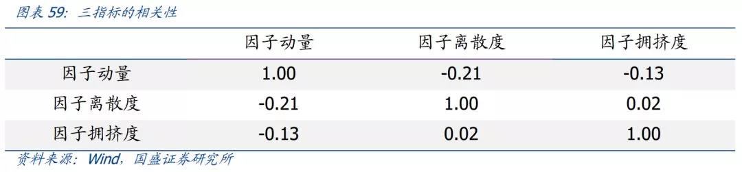 在做信号融合之前,我们需要考察三个指标之间的相关性,如果指标之间高度正相关,那么因子离散度和因子拥挤度并不能提供增量信息。根据2011-2019年的数据,我们发现因子动量指标与因子离散度和因子拥挤度指标呈现轻微的负相关性,而因子离散度和因子拥挤度指标的相关性基本上为零。