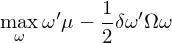 其中 ω 是资产权重向量、μ 和 Ω 分别为预期收益率向量以及协方差矩阵、δ 是风险厌恶系数。当不考虑任何约束是,上述 MVO 问题的最优解是:
