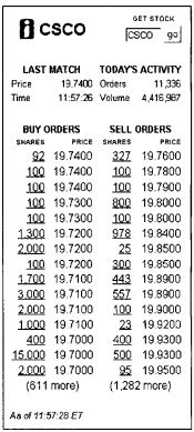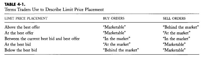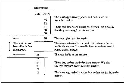 交易员通过报出自己的bid(买入)或者ask(卖出)来下单。否则,他们会使用订单将他们的bid和ask报价转达给经纪人、自动交易系统,来安排他们的交易。bid和ask通常包括有关交易者接受的价格和数量的信息。