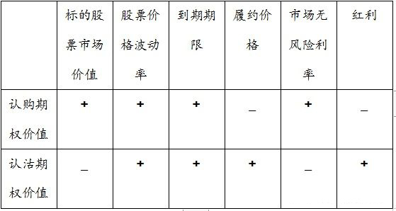由于认购期权的内在价值等于股票价格减去行权价格,所以当股票的价格上升时,认购期权的价值上升。同理,由于认沽期权的内在价值等于行权价格減去股票价格,所以当股票价格上升时,认沽期权的价值下降。