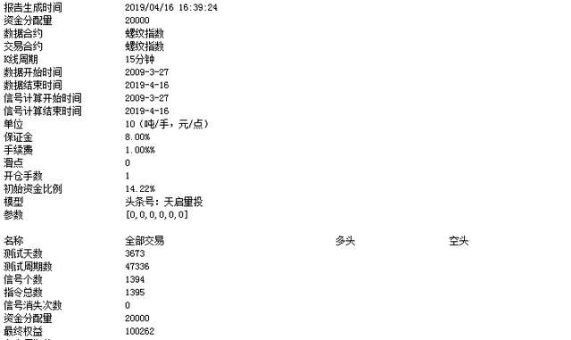 在这里,我测试的时间是螺纹钢上市至今的,方便对比。经过测试之后,我们得到了结果: