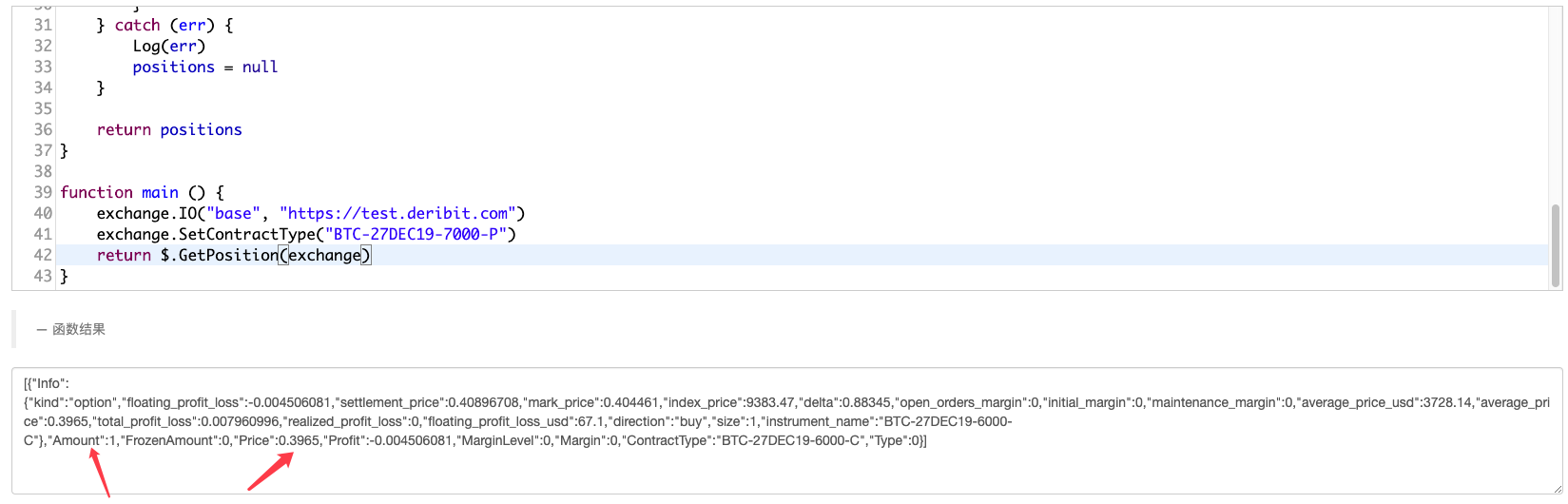 持仓方面就不能直接使用封装好的GetPosition函数了,因为默认Deribit交易是期货交易,并不是期权交易,只能用这个函数获取期货持仓。所以这个就必须要我们自己动手封装获取期权持仓的函数了。