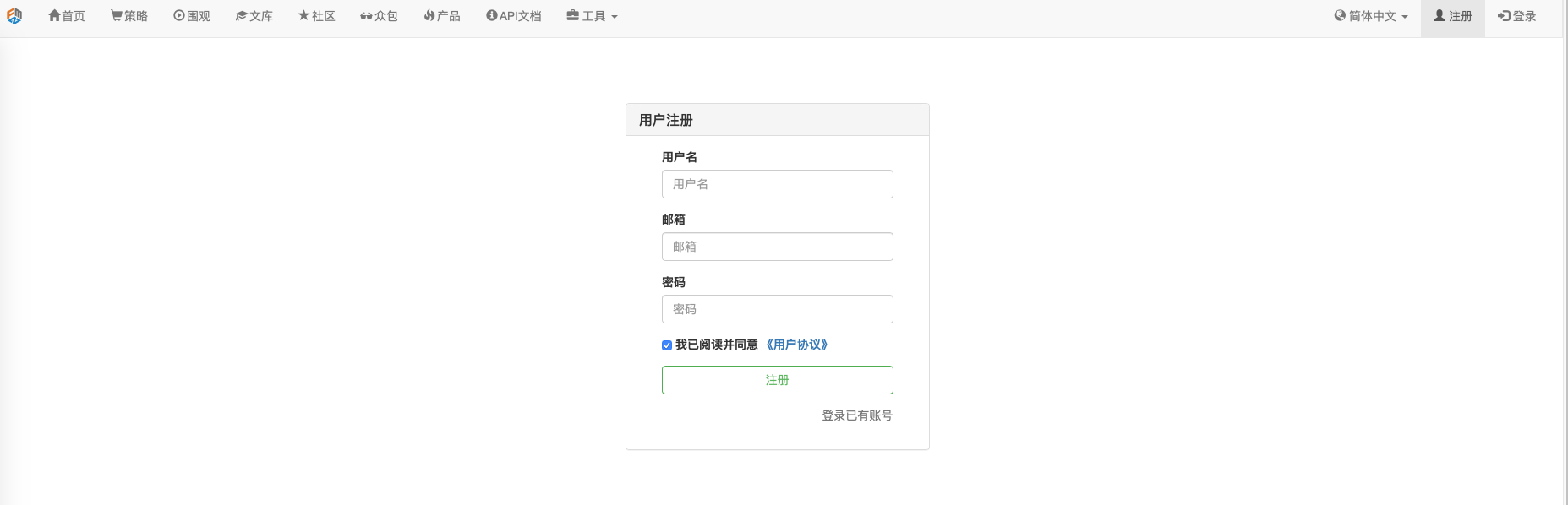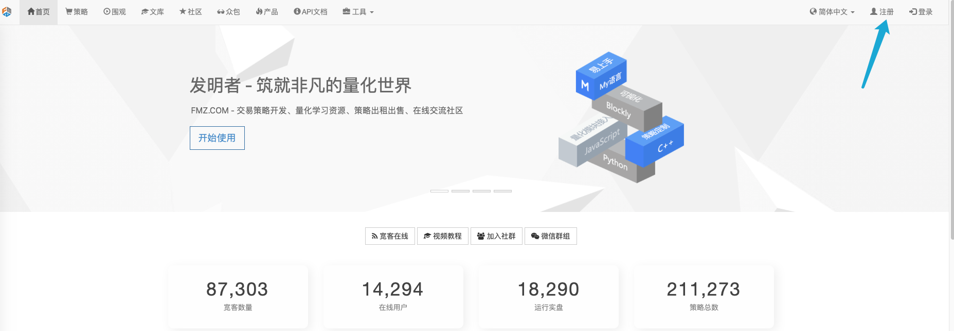 如果已经注册了发明者量化,可以直接登录,忽略该步骤。登录:https://www.fmz.com