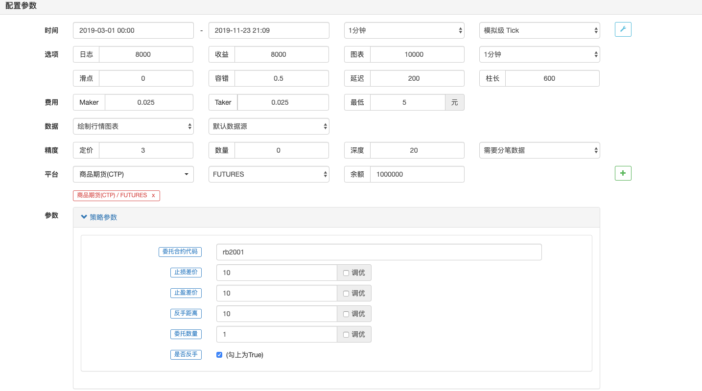 同样使用委托一个订单后,自动生成止损、止盈、反手委托任务的机制,只不过第一个委托订单,按照1分钟级别均线和当前价格的偏离程度来作为触发条件,做回归策略,收盘前平仓。策略并不复杂。