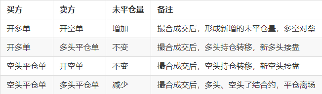 我们使用一个表格来理解,买卖交易对于持仓量的影响: