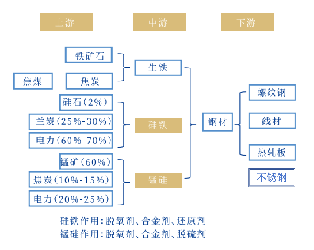 铁合金是由铁与一种或几种金属或非金属元素组成的合金。硅铁合金由铁和硅组成,是其主要成分之一;而锰铁是由铁和锰组成,同时含有少量碳、硅、磷等其他元素,当含有足够多的硅时,称为锰硅合金。这些铁合金主要用于钢铁工业,作为炼钢时的脱氧剂、合金剂以及铸造的晶核孕育剂等,通常在电炉、转炉和精炼环节中添加。