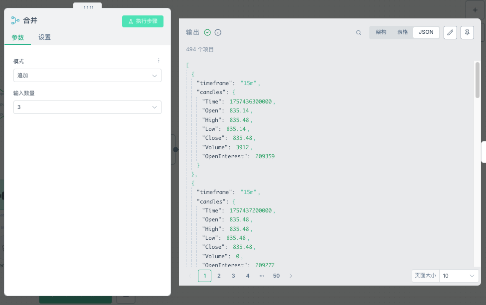 工作流部署了三个MarketInfo节点,分别获取不同时间维度的数据: