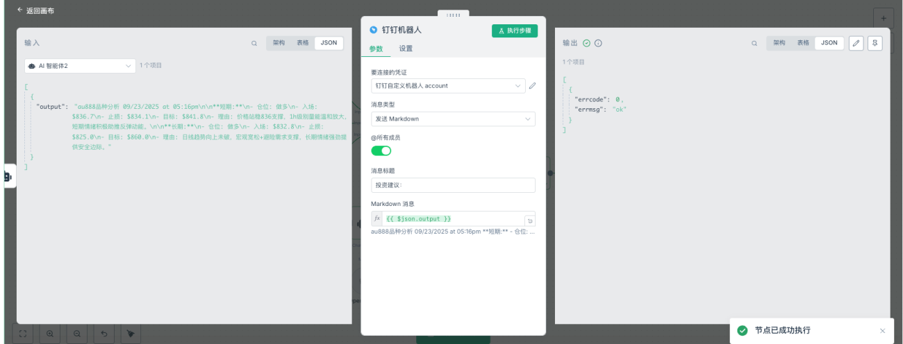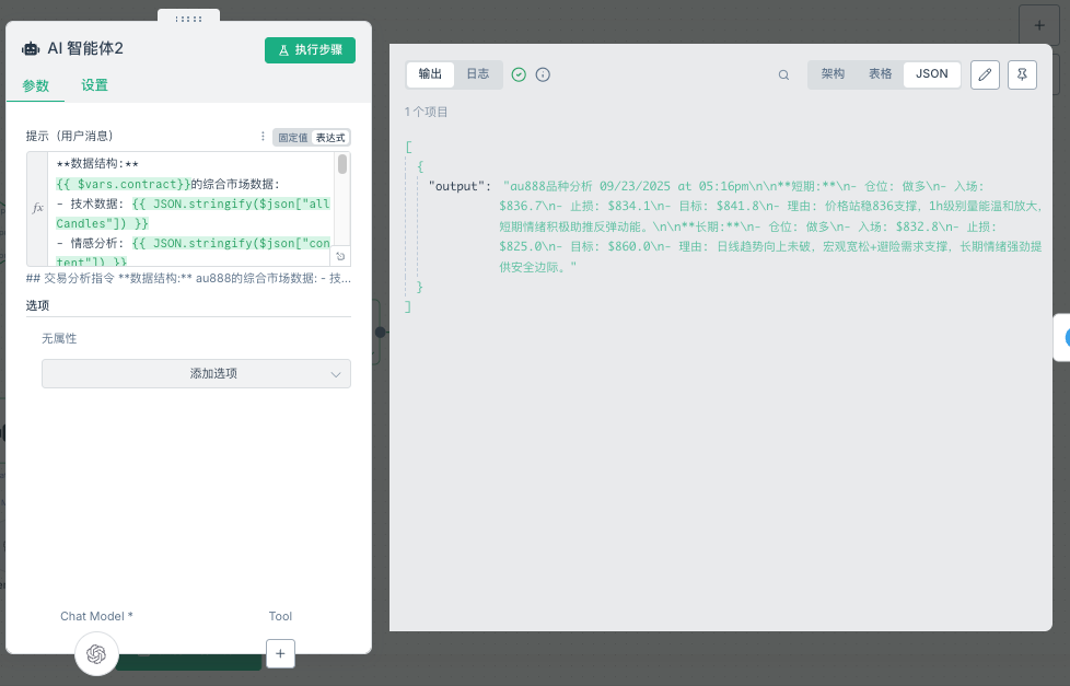 只需在AI分析节点后添加条件判断和交易执行分支即可实现完全自动化的交易系统。