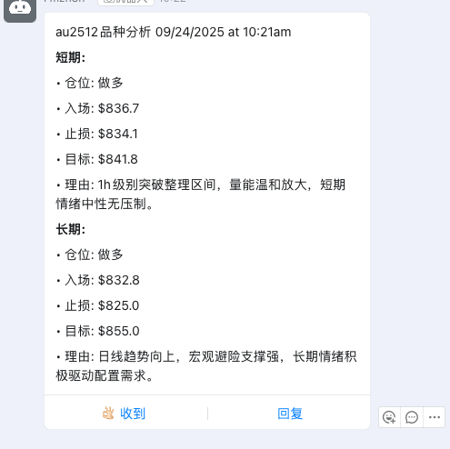 这样,我们就完成了专属于自己的分析频道,可以根据自己交易的品种,进行相关的市场分析和交易建议推送。