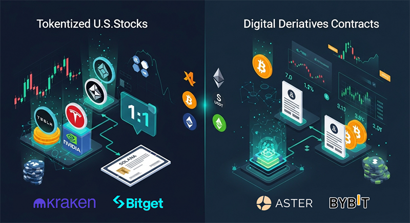 永续合约形式:比如Aster和Bitget提供的,这种是衍生品合约,不直接持有股票,而是追踪股价并用加密货币结算